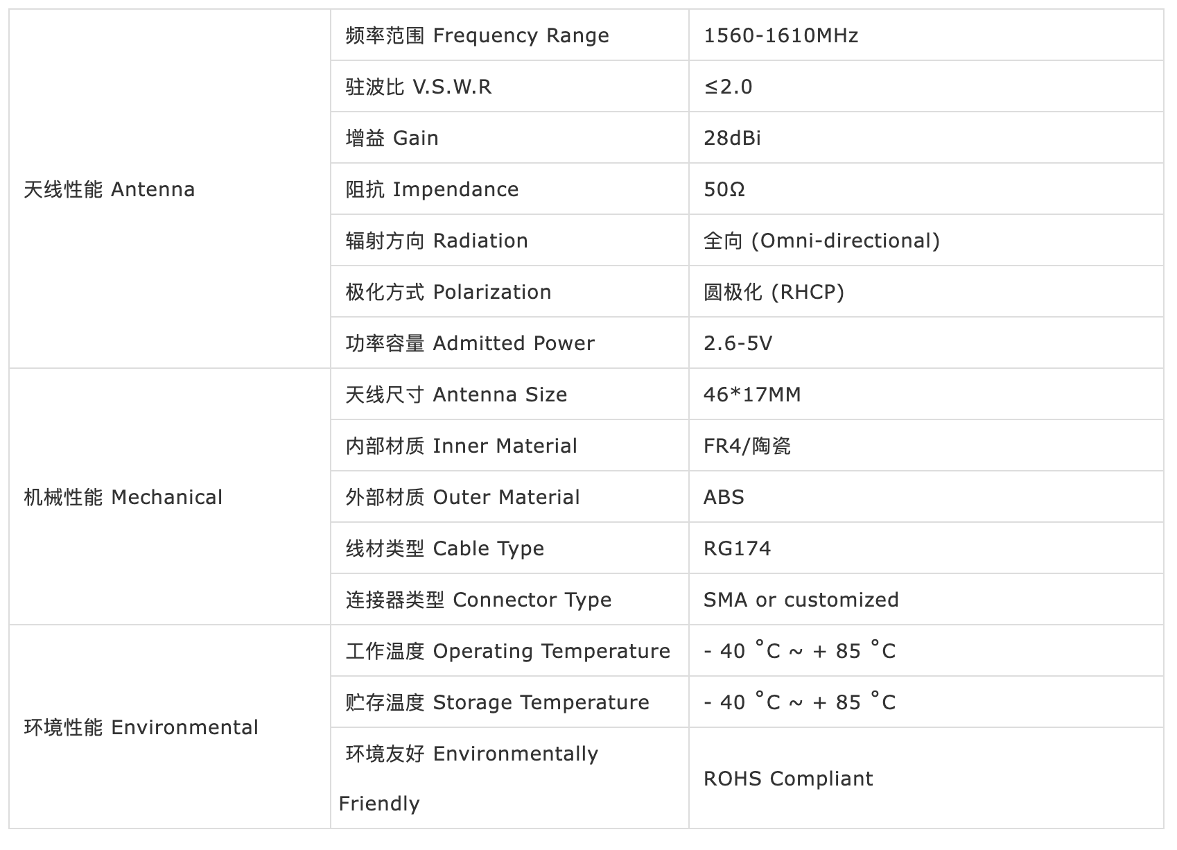 • 天线类型: